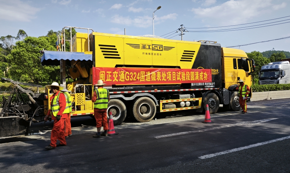 加粘纖維微表處是一種同時(shí)進(jìn)行粘層油噴灑和纖維微表處施工的一種施工工藝。
