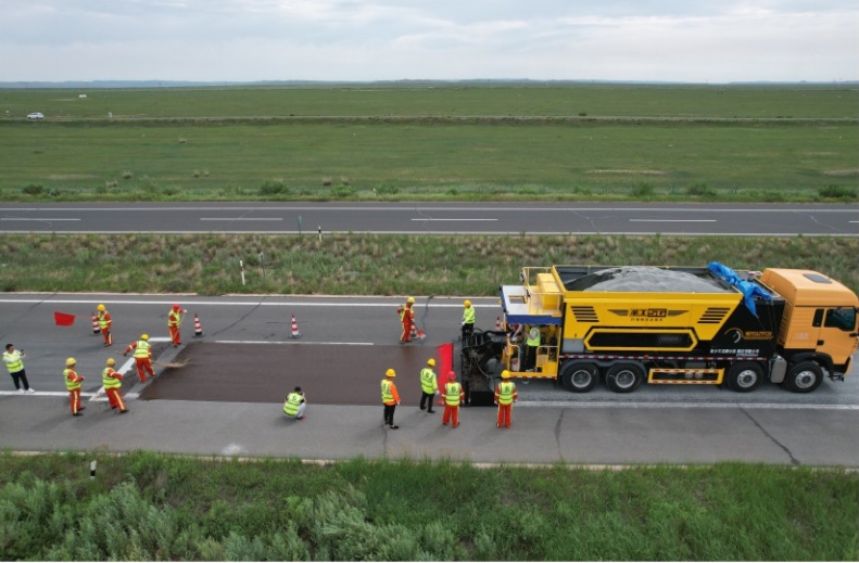 開普封層技術(shù)是先做一層碎石封層,再做一層或者多層稀漿封層(或微表處)的一種預(yù)防性養(yǎng)護(hù)性方案。碎石封層應(yīng)用在稀漿封層/微表處之前,可以使其更加固化。采用熱瀝青、橡膠瀝青、改性乳化瀝青或改性瀝青等作為粘結(jié)材料,對(duì)原有路面的裂縫起到了很好的填充作用,增加了底層路面的含油量。在很大程度上降低了表層稀漿封層(或微表處)的開裂,抑制了裂縫的反射,起到很好的封水效果,延長了道路使用年限,是一種有效的預(yù)防性養(yǎng)護(hù)方案。