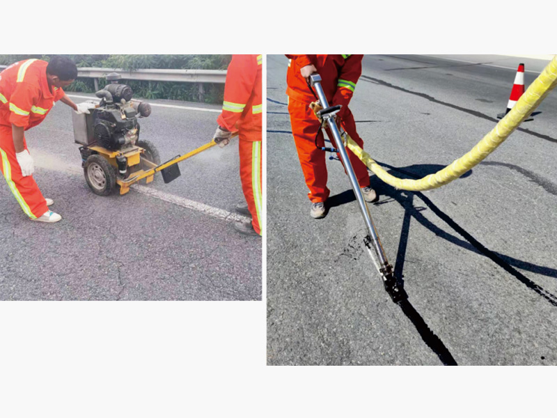 2、開槽清縫:用專用開槽設(shè)備沿裂縫開槽出寬深比為1:1或者1: 2的槽口,再用鏟刀、鐵鉤、空氣壓縮機等機具將裂縫清理干凈。