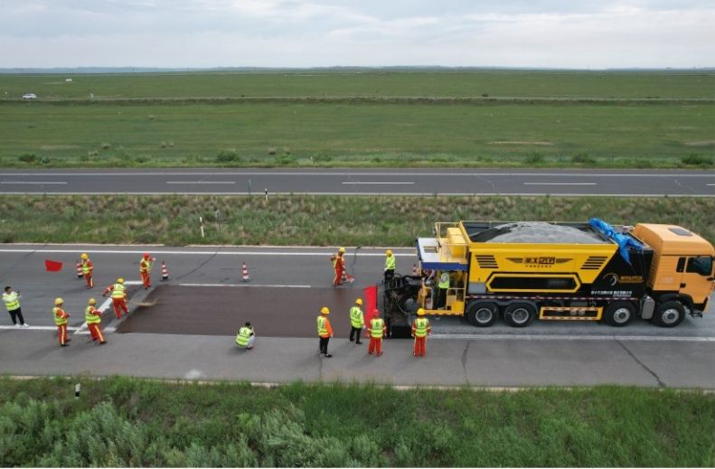 一、工藝介紹: 精細抗滑表面處治技術(shù)簡稱(精表處)是一種新型路面預(yù)防性養(yǎng)護技術(shù).精表處施工采用層鋪法工藝,精選單粒徑碎石和高分子復(fù)合改性的粘結(jié)材料,在覆蓋率較高的碎石封層上再灑布穩(wěn)固材料而形成的瀝青路面薄層.精表處具有防水抗裂和提高抗滑性能的作用,延緩瀝青路面病害的發(fā)生,延長路面的使用壽命.二、功能:具有抗磨耗、增加路面摩擦系數(shù)等作用,顯著提高瀝青路面防水性能、抗滑性以及改善路面外觀狀況. 三、適用范圍(1)新建瀝青路面構(gòu)造深度過大、滲水系數(shù)不合格、以及表層瀝青混凝土松散掉粒的病害處理。(2)舊瀝青路面需要進行預(yù)防性養(yǎng)護的瀝青路面,路面出現(xiàn)細微裂縫,表層瀝青老化、剝落.表面顏色不均勻一致。(3)美化路面外觀,局部銑刨攤鋪后新舊路面顏色外觀不一致的處理。(4)使用本工藝的實施時間為3~5年,此工藝的使用壽命為5~8年。 四、技術(shù)特點1、精細抗滑表面處治技術(shù)的優(yōu)勢在于粘結(jié)材料的高性能、具有粘附力強、快速成型的特點,耐候性好、殘留物的低溫性能和高溫性能優(yōu)異。2、采取了有利于降低噪聲的單一粒徑較小碎石,可明顯降低行車胎噪,行車更加舒適。3,高性能膠結(jié)料具有彌補縫隙、防止路面滲水;增加玄武巖纖維起到了結(jié)構(gòu)層加筋的作用,有利于阻止裂縫的快速發(fā)生.4、磨光值、壓碎值較高的玄武巖礦料在路面表層直接充當磨耗層,達到保護下承層和改善路面抗滑性能的效果。