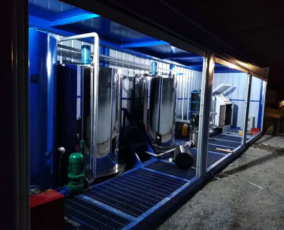 西安未央?yún)^(qū)的整套乳化瀝青生產(chǎn)線,均選用我公司的集裝箱式設(shè)計產(chǎn)品,今日已調(diào)試完成進行生產(chǎn)。